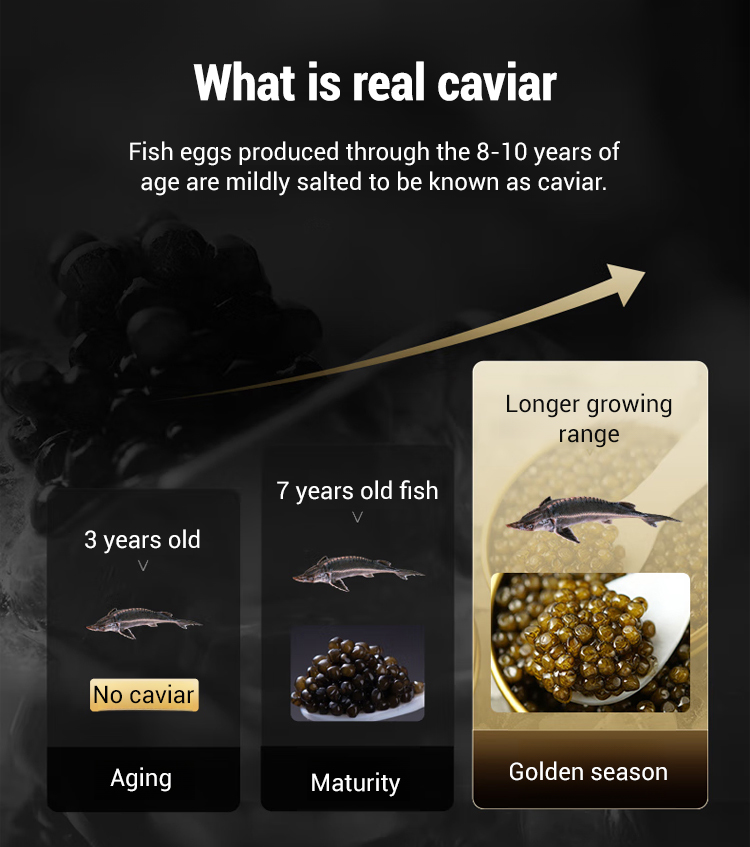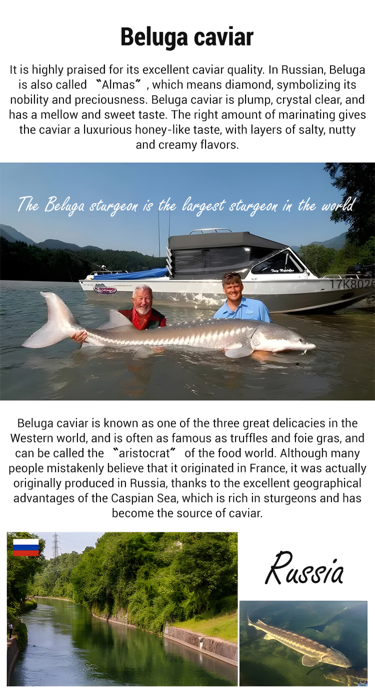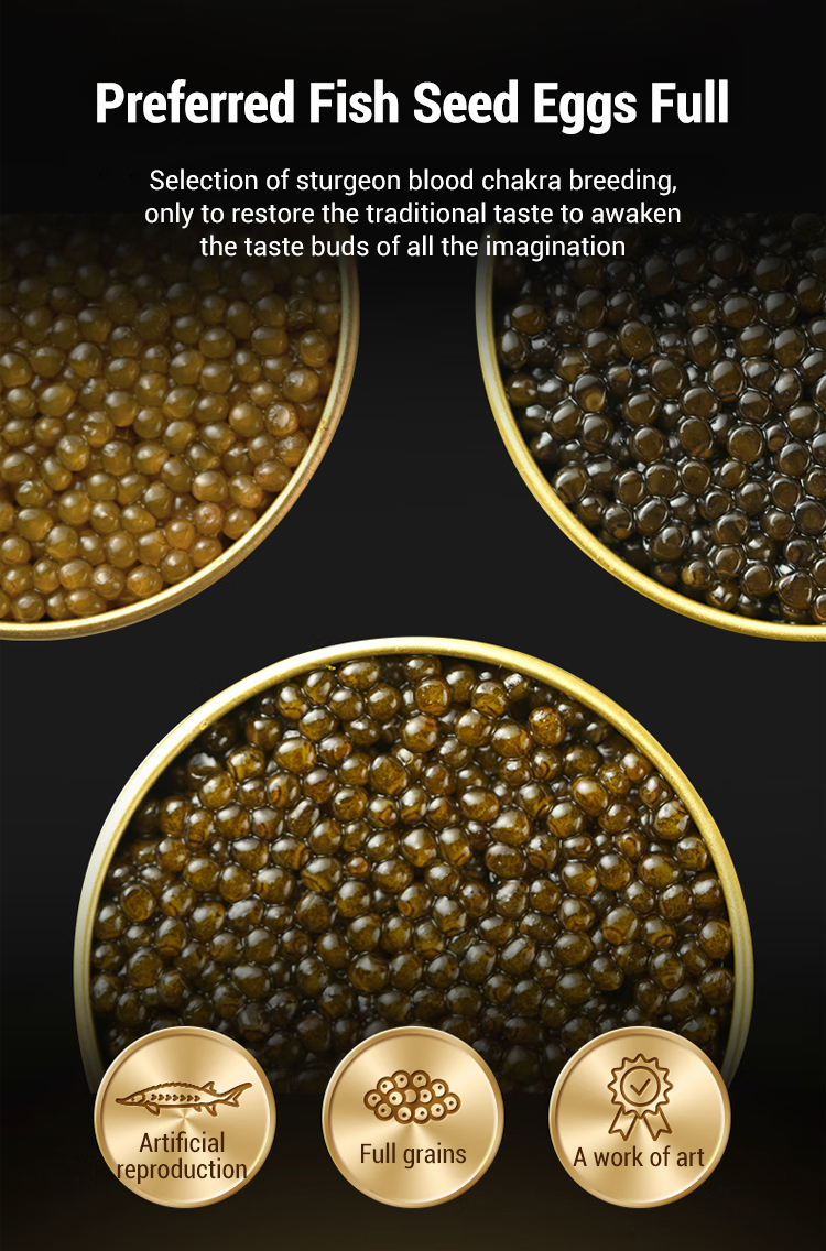 🔥Selected wild Caspian sturgeon, naturally grown for over 10 years, processed within 6 hours of catch, using low-temperature flash freezing technology to lock in 99% of nutrients and flavor within 10 seconds. No additives, no preservatives, preserving the purest natural flavor of caviar. The roe grains are plump and round, with a diameter of over 2.8mm, and a glossy black color. 🥰Rich in high-quality protein, unsaturated fatty acids, vitamin A, vitamin D, and various trace elements such as calcium, iron, and zinc.