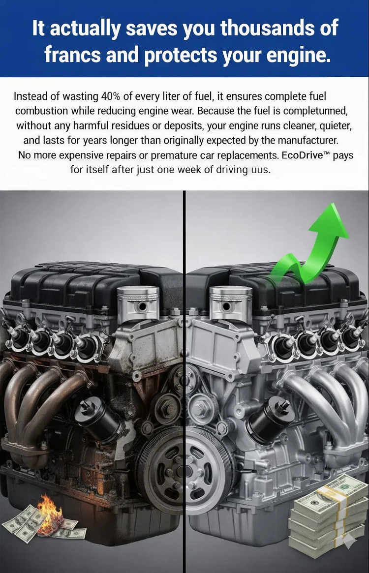A groundbreaking breakthrough in energy-saving technology for the automotive industry! Certified by the Powertrain Engineering Research Institute! 847.3nm precise electromagnetic waves recombine disordered fuel molecules, ensuring 100% complete combustion of every drop of fuel, directly eliminating 40% of fuel waste, reducing fuel consumption by 50%, boosting range by 56%, while unlocking powerful acceleration performance, smoother idling, more responsive throttle, and significantly reducing exhaust emissions while boosting horsepower.